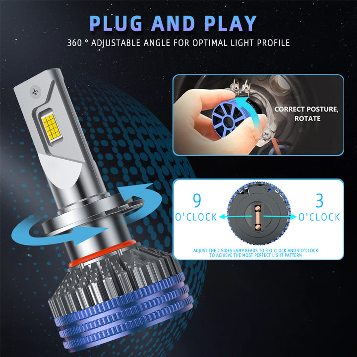 🛠️ Nemt Plug & Play Installation med CANBUS Klar Design: Nyd en ikke-destruktiv, hurtig og nem installation. Den indbyggede CANBUS Intelligent Dekoder Driver sikrer fejlfri ydeevne og kompatibilitet med 99% af køretøjssystemerne. Pærerne har også en 360° justerbar vinkel for perfekt at justere LED-chipsene (3 & 9 klokkeslæt position) for optimal lysprofil.